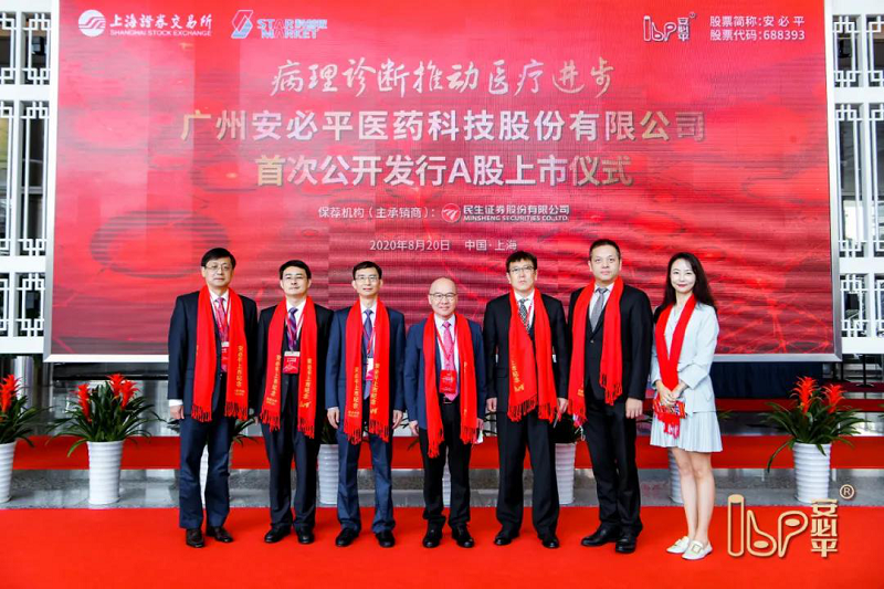 今天,广州安必平医药科技股份有限公司(证券简称:安必平,证券代码:688393)科创板上市仪式在上海证券交易所及上海证券交易所南方中心(广州)同步举行,这是国内病理诊断领域第一股,也是安必平历史的重要一刻。安必平董事长、总经理蔡向挺先生、广州开发区管委会副主任张晖先生、广州开发区金融工作局副局长汤克明先生、民生证券股份有限公司执行副总裁、投资银行事业部总裁杨卫东先生、安必平董事、董事会秘书、副总经理汪友明先生、安必平董事陈吾科先生、股东代表深圳高特佳弘瑞投资董事长黄青女士、中山大学金年会诚信至上基因股份有限公司董事、总经理周新宇先生等股东及中介团队代表、安必平高管团队等出席了本次在上海证券交易所举行的安必平科创板上市仪式,共同见证这一具有里程碑意义的时刻。