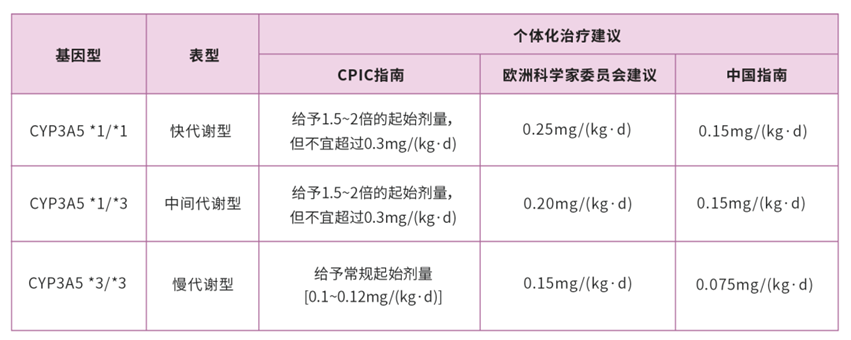 在临床上给患者用药时,应根据患者的病情和身体状态,以及相关的基因型,来合理地确定他克莫司的起始剂量,并结合治疗药物监测数据制定个体化给药方案,以达到安全有效的用药目的。